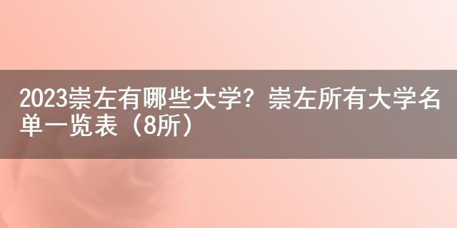高考填報志愿時,2023崇左有哪些大學是廣大考生和家長朋友們十分關心的問題,截至目前,崇左有廣西民族師范學院、廣西城市職業大學、廣西自然資源職業技術學院、廣西農業工程職業技術學院、崇左幼兒師范高等專科學校、廣西理工職業技術學院、廣西科技職業學院、廣西中遠職業學院等8所大學,以下是所有大學名單一覽表,希望對大家有所幫助。