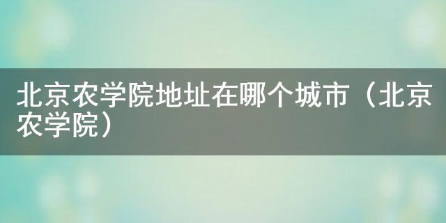 隨著社會(huì)越來(lái)越發(fā)達(dá),大家都選擇在網(wǎng)絡(luò)上汲取相關(guān)知識(shí)內(nèi)容,比如北京農(nóng)學(xué)院地址在哪個(gè)城市(北京農(nóng)學(xué)院),為了更好的解答大家的問(wèn)題,小編也是翻閱整理了相應(yīng)內(nèi)容,下面就一起來(lái)看一下吧!